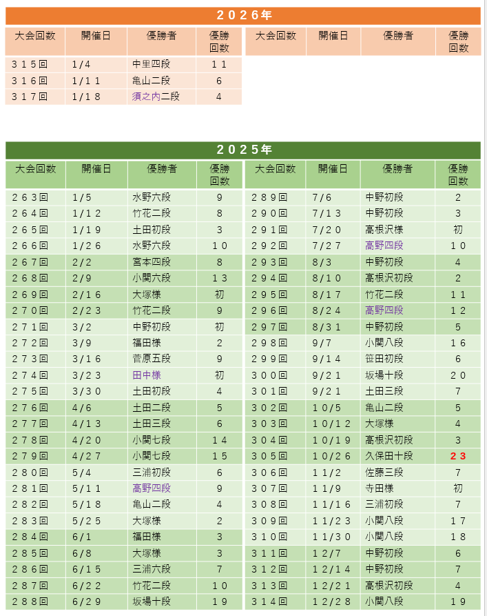 2025-2026 大会優勝者