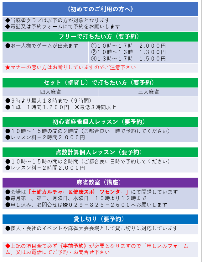 当クラブでは「点数計算個人レッスン」も常時行っていますので希望の方はご相談下さい。