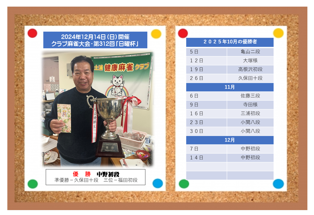 吸わない・賭けない・飲まない『土浦健康麻雀クラブ』